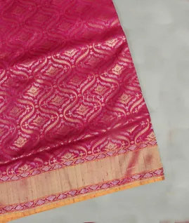 This beautiful banaras silk saree has a purple body with gold and silver zari all over. This saree is accompanied with a self blouse.