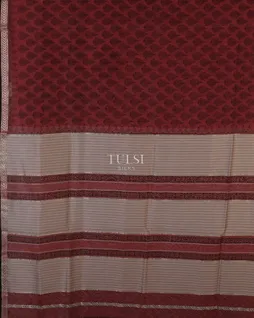This maheshwari printed cotton saree has a red body with prints all over. The saree is accompanied with a contrasting blouse.