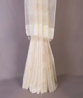 White Handwoven Tussar Saree T691227